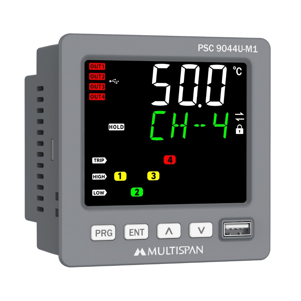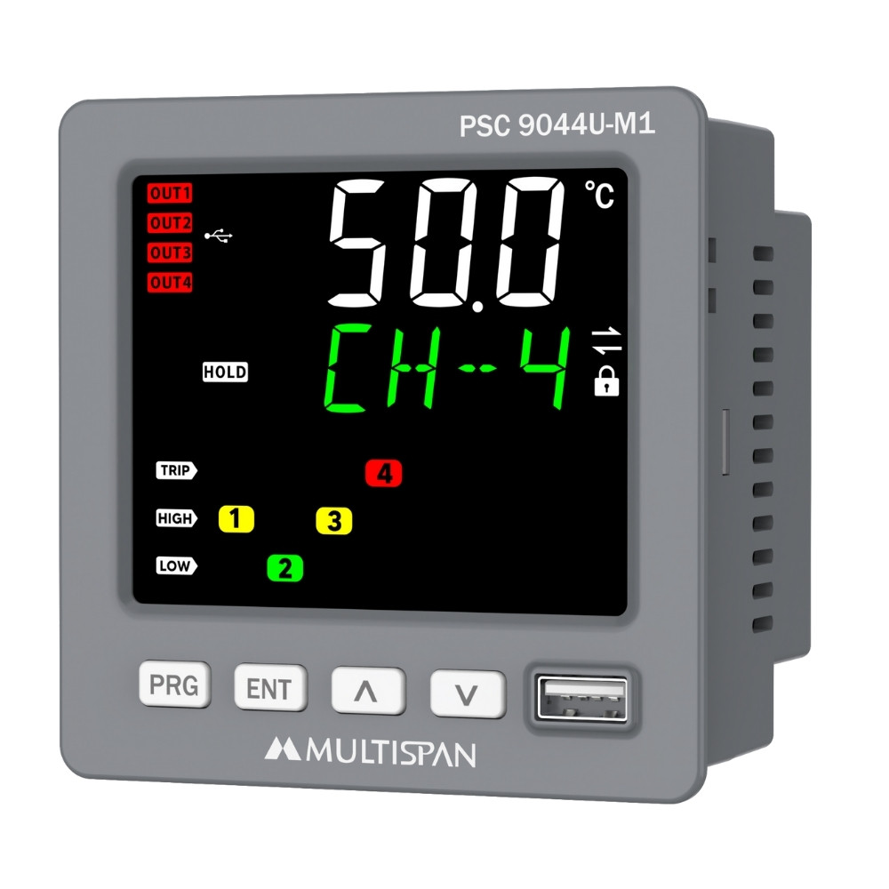 | Output | 4 Relay (NO-C-NC) 1C/O 5A@230V AC, 5A for resistive load USB Data Logging Facility with RS-485 RTU MODBUS |