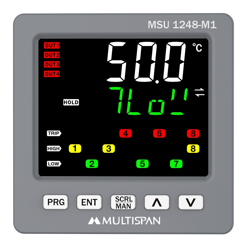 - Universal Input ((J, J.1, K, K.1, PT-100, PT.1,R,S,E,N,T,B,C,L,U 0 - 10V DC,