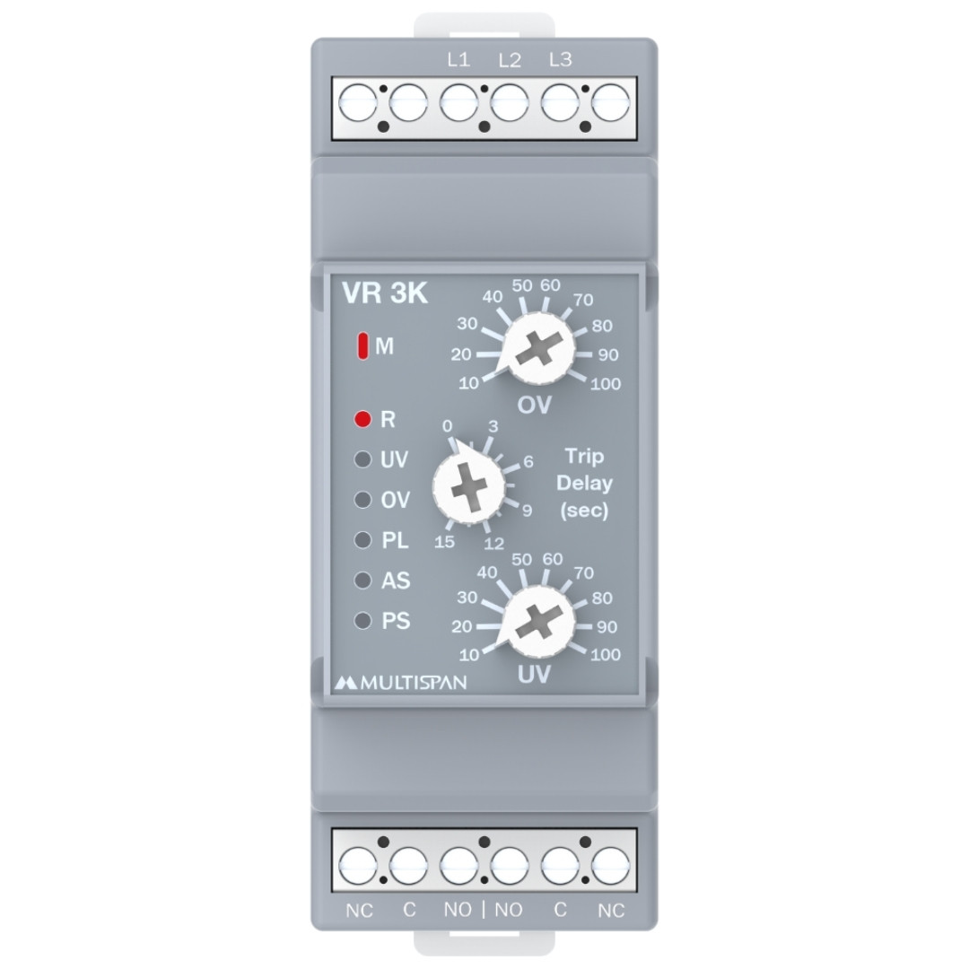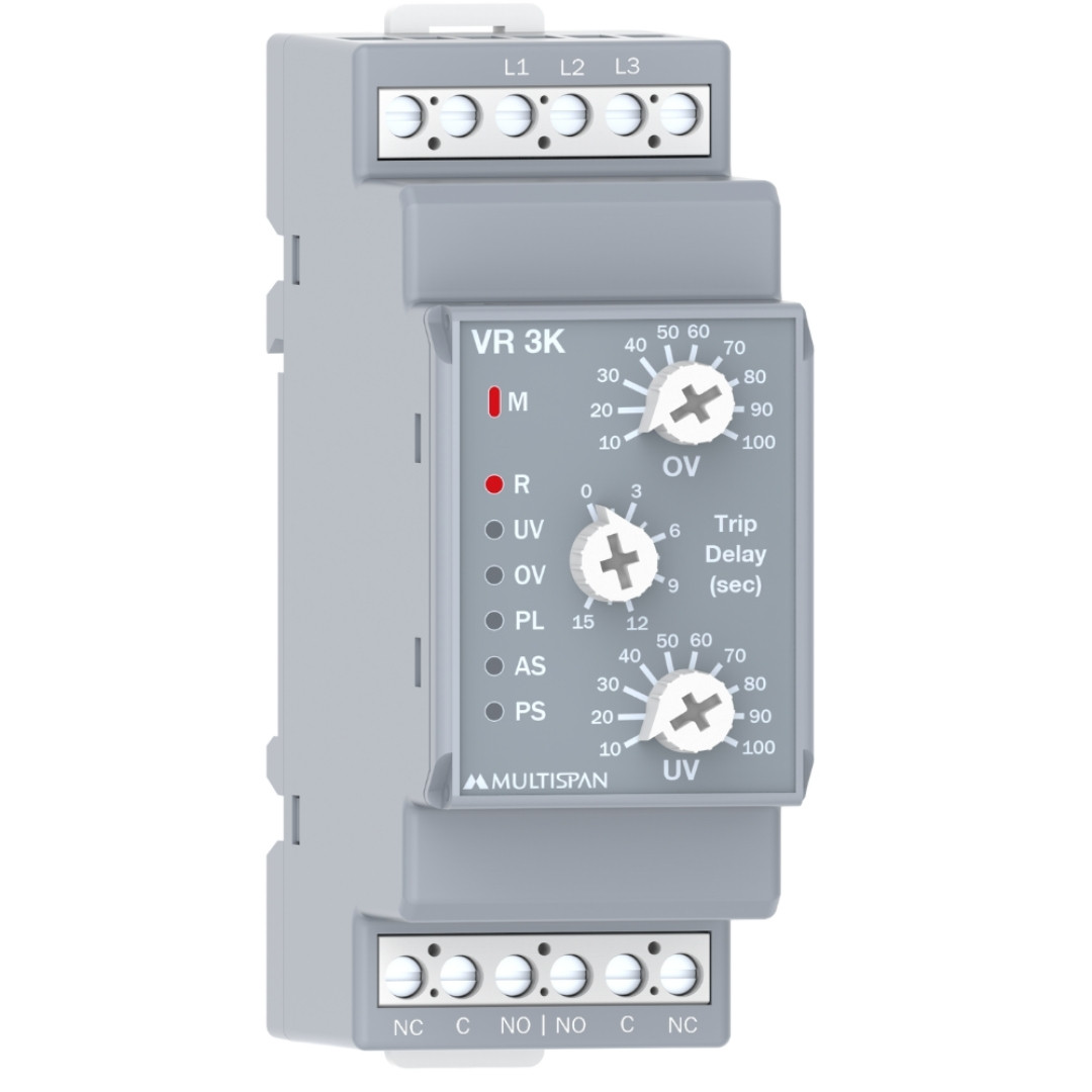 VR-3K-00 | 90 x 35 x 62.5 | 3Ø-3W | 280V AC to 520V AC | 1-Relay, 2-C/O | Self Powered |