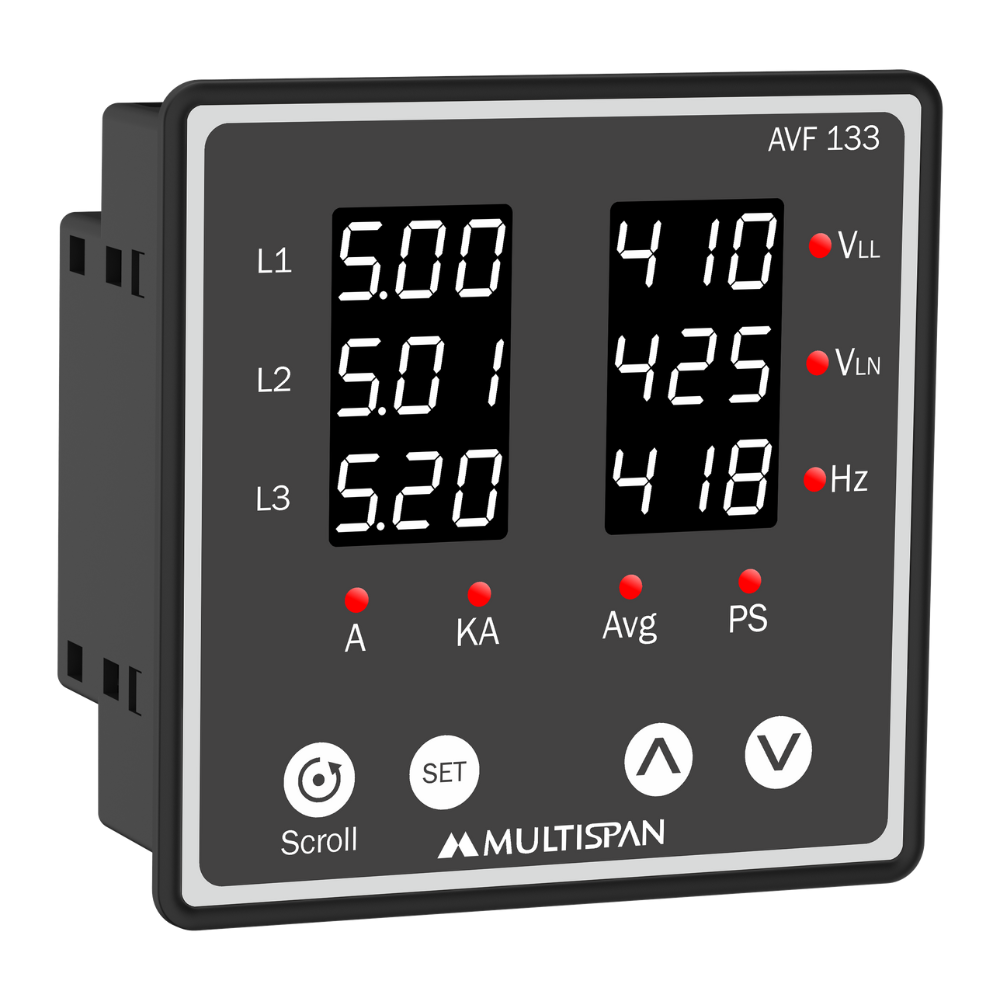 | LED Indication | A , KA , VLL , VLN , Avg, PS, Hz |