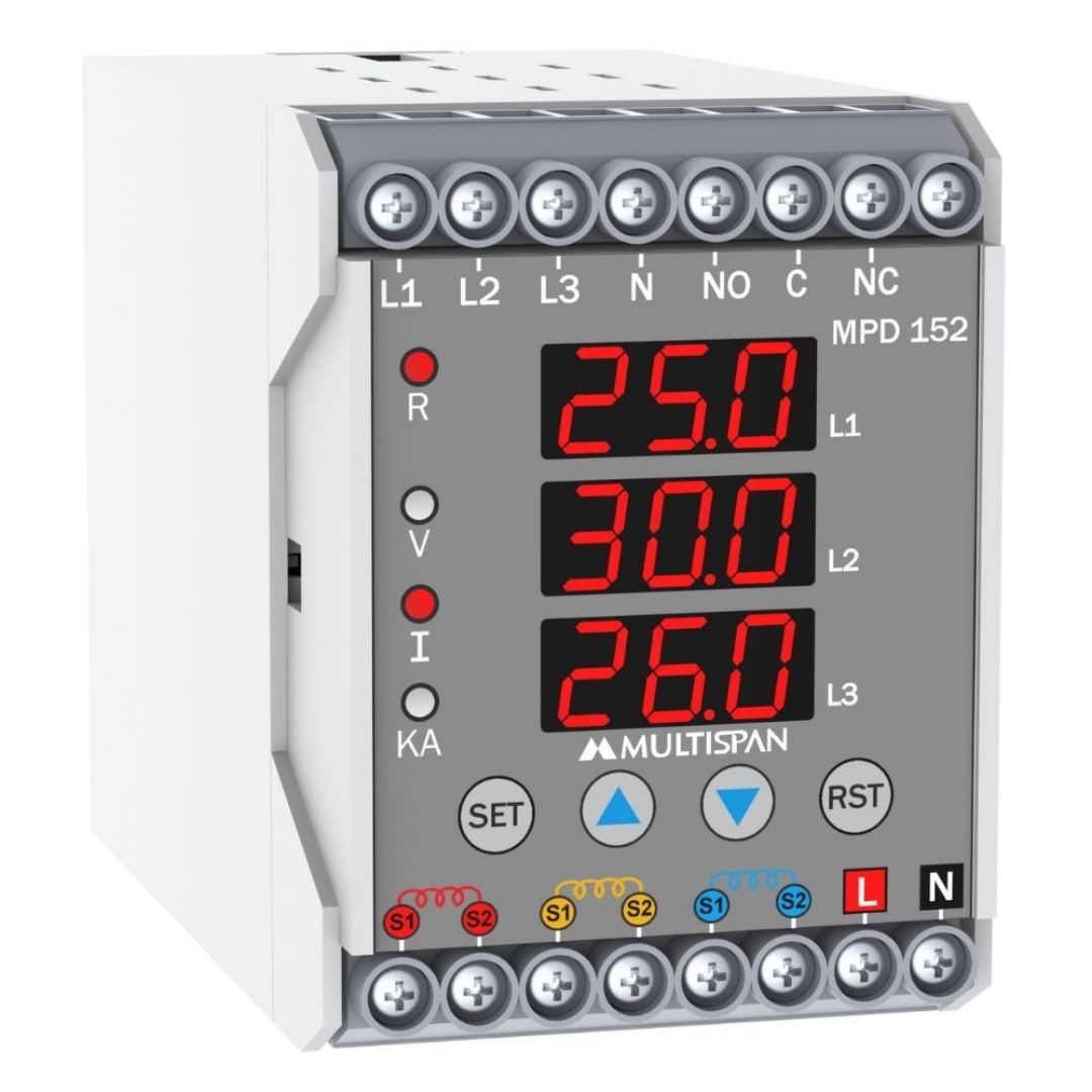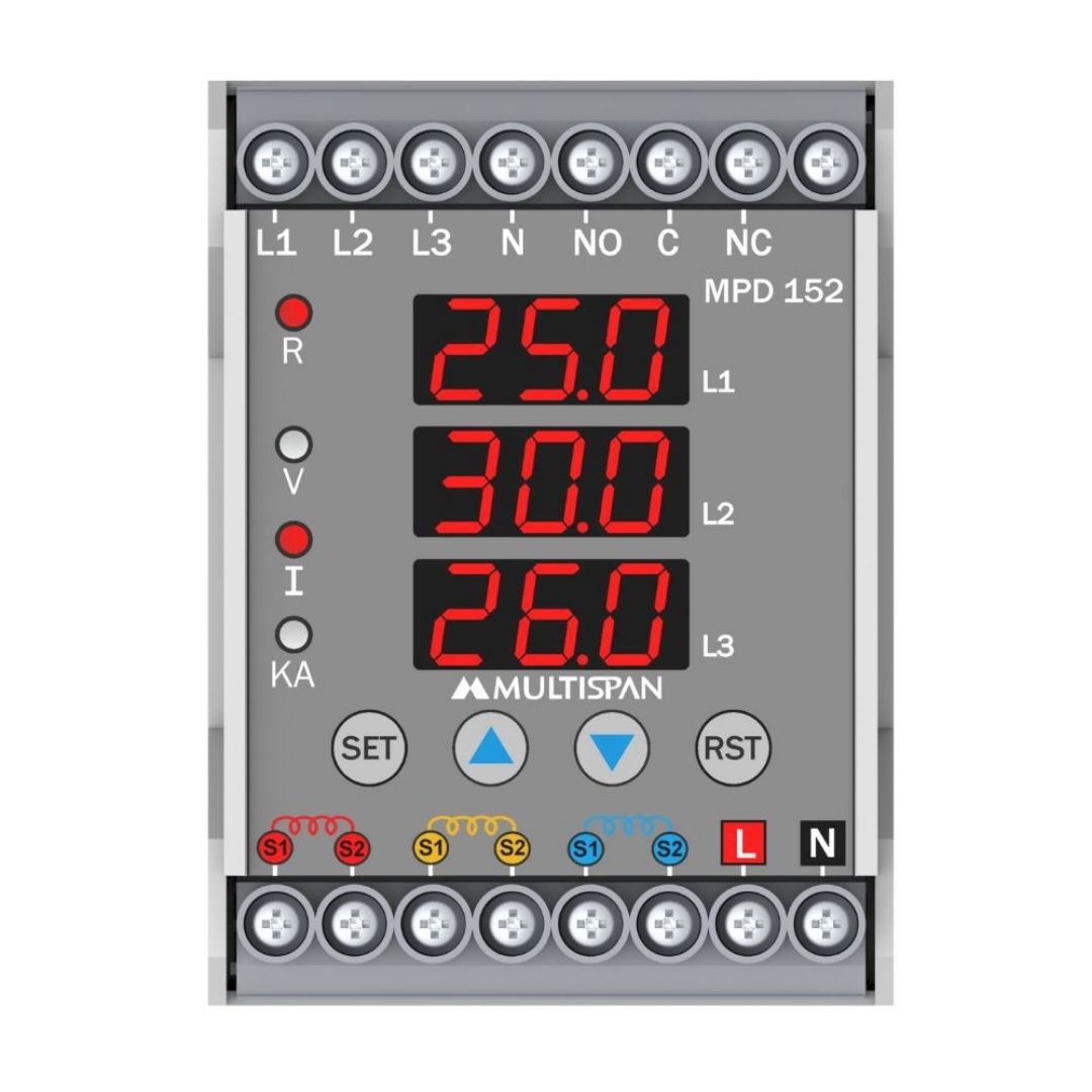 | MPD-152-A2-08 | 30 to 300V AC (L-N), 50 to 520V AC (L-L) | Fixed Multispan 125A- 3 Ph CT Module | 1R 1 C/O | 100 to 270V AC |