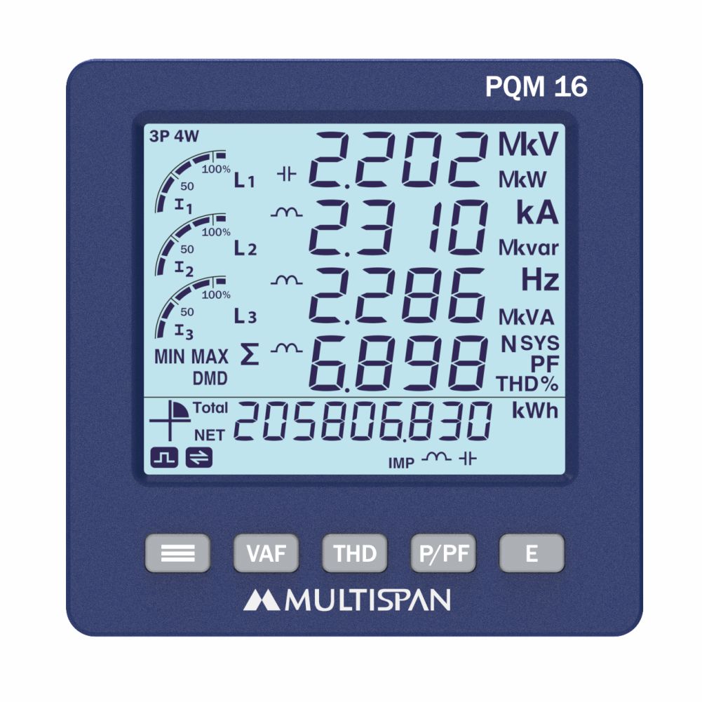| Key | PROGRAM, VAF, THD%, POWER/PF, ENERGY |
