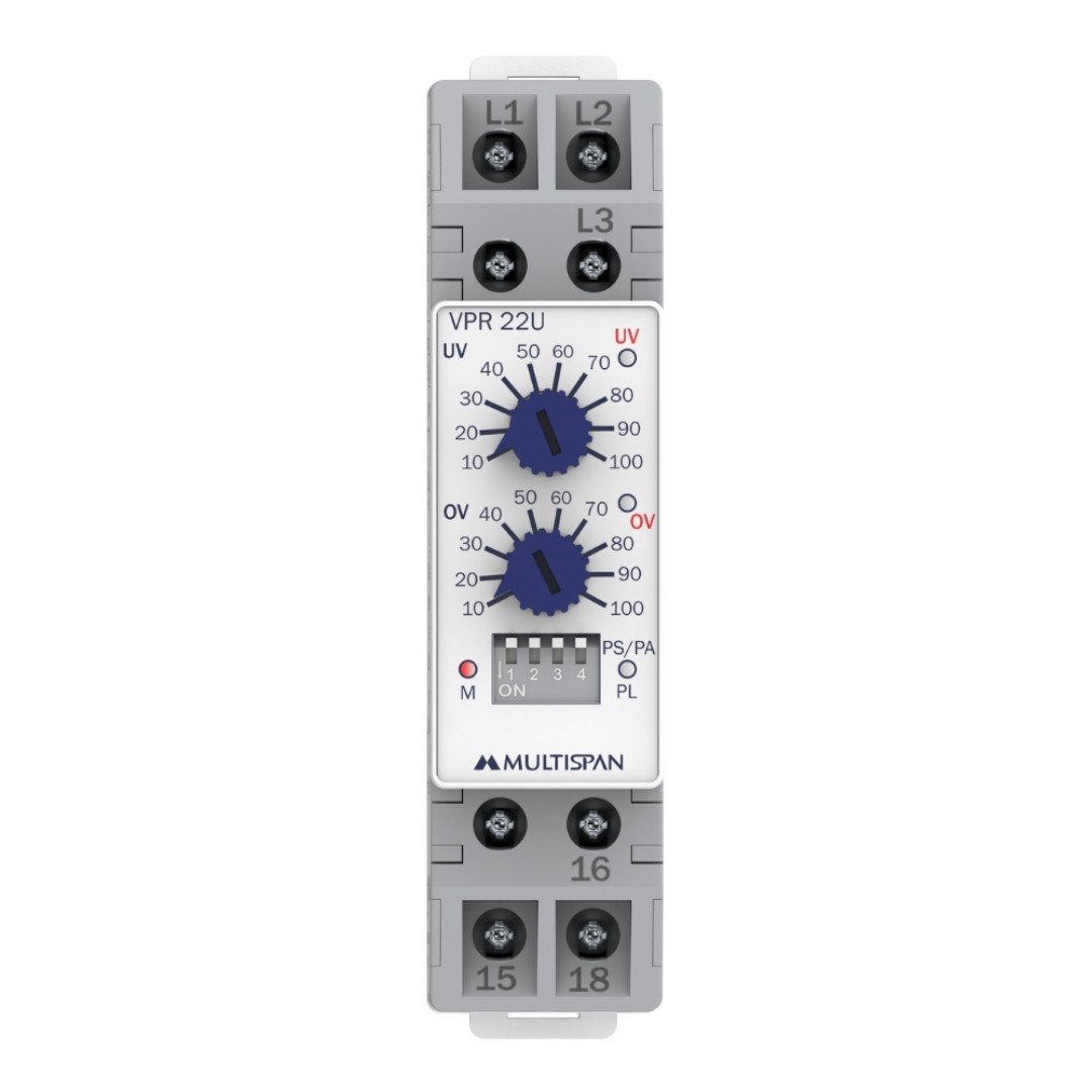 VPR-22-01 | 90(H)x22.5(W)x72(D) mm | 3Ø3W, | yes | yes | yes | yes | yes | 280V AC to 520V AC | 1R, 1-C/O | Self Powered | |